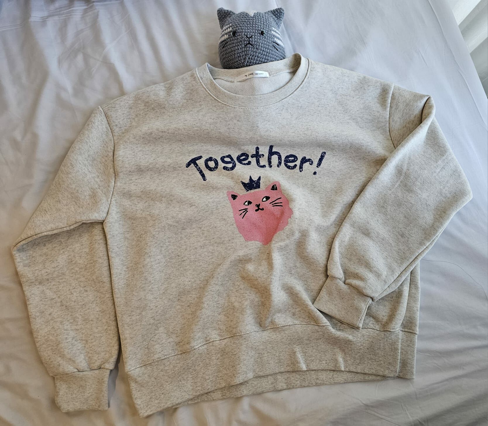 可愛滿滿的小貓咪嗖,馬上就能完成想要出去玩的休閒裝拉絨套頭衫:)